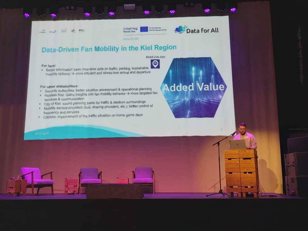 Auch wir waren mit unserem deutschen Pilotprojekt dabei: „Fanmobilität in der KielRegion“. Gemeinsam mit unseren Partnern entwickeln wir Lösungen für eine nachhaltige und intelligente Mobilität bei Großveranstaltungen.