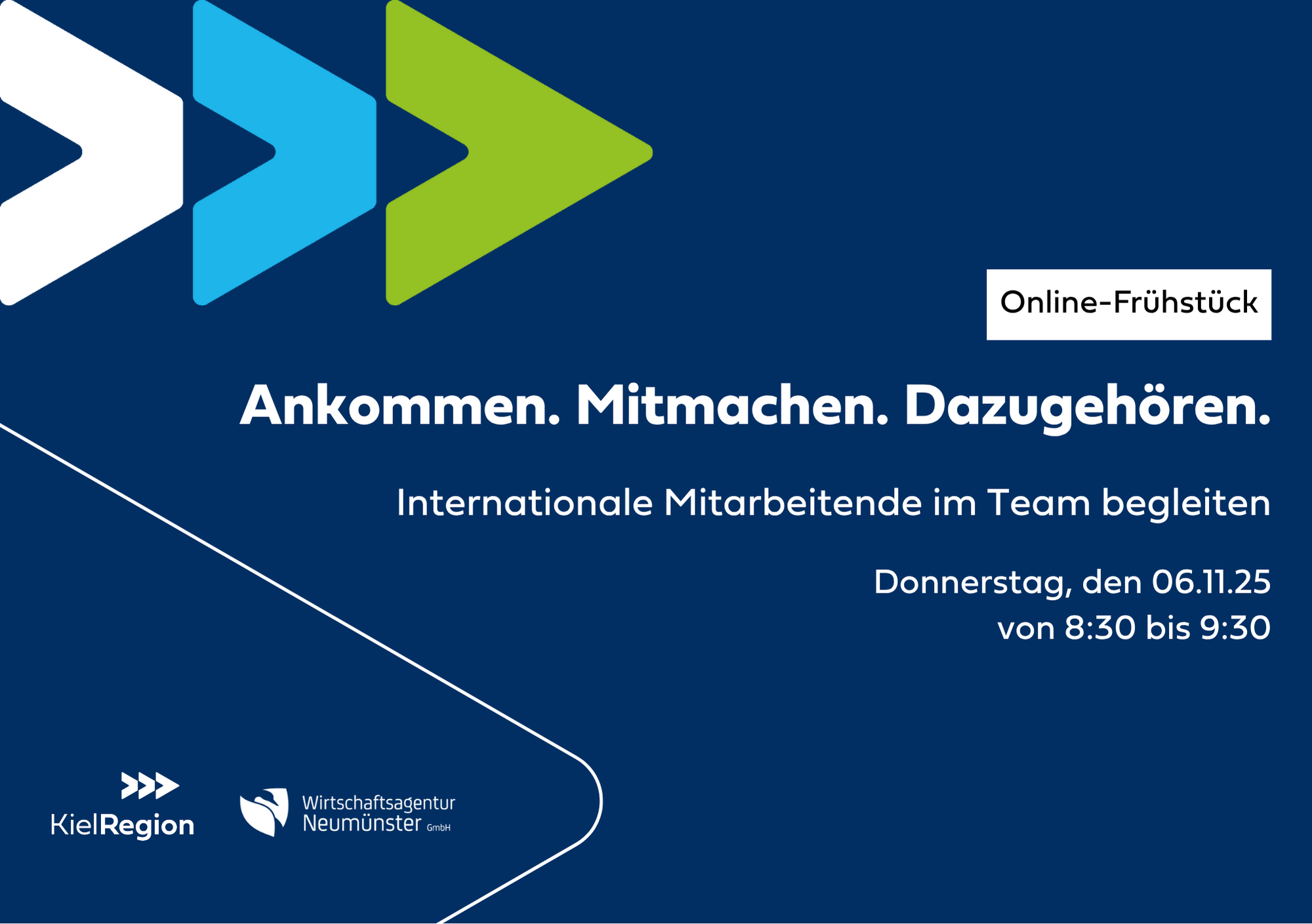 Wir laden Sie herzlich ein zum Online-Frühstück „Ankommen. Mitmachen. Dazugehören. – Wie Unternehmen internationale Mitarbeitende beim Einstieg ins Team begleiten können – inklusiv, wertschätzend und praxisnah.“ am Donnerstag, den 6. November 2025, von 8:30 – 9:30 Uhr mit Referent Björn Prühs (Projektleiter Mobiles Integrationsteam, Deutsches Rotes Kreuz Kiel).